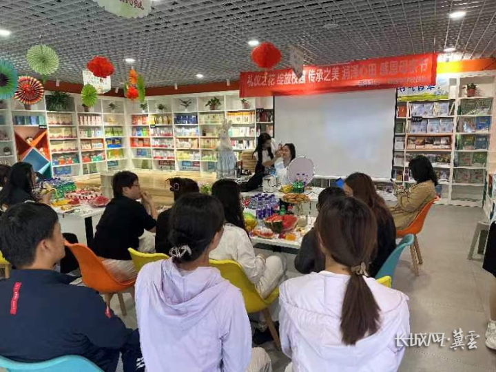 活动中,深州市第四中学校园书店开展“礼仪之花,绽放校园”母亲节主题活动,邀请专业化妆师,为女教职工们开展形象艺术设计等礼仪方面的讲座,送上一份特殊的节日贺礼。