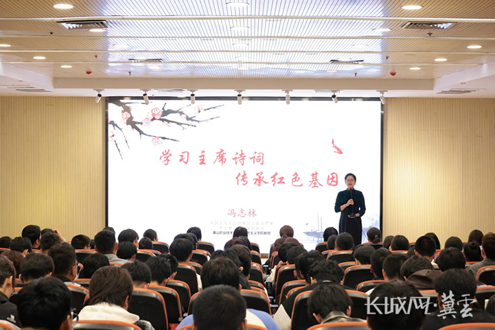 长城网·冀云客户端讯(记者 邢丁 通讯员 李立强 王思琦)“独立寒秋,湘江北去,橘子洲头。看万山红遍,层林尽染;漫江碧透,百舸争流。鹰击长空,鱼翔浅底,万类霜天竞自由……”日前,唐山职业技术学院邀请中国毛泽东诗词研究会常务理事、河北省优秀教师、华北理工大学兼职教授、唐山职业技术学院教授冯志林,为学院师生作“学习主席诗词 传承红色基因”专题讲座。